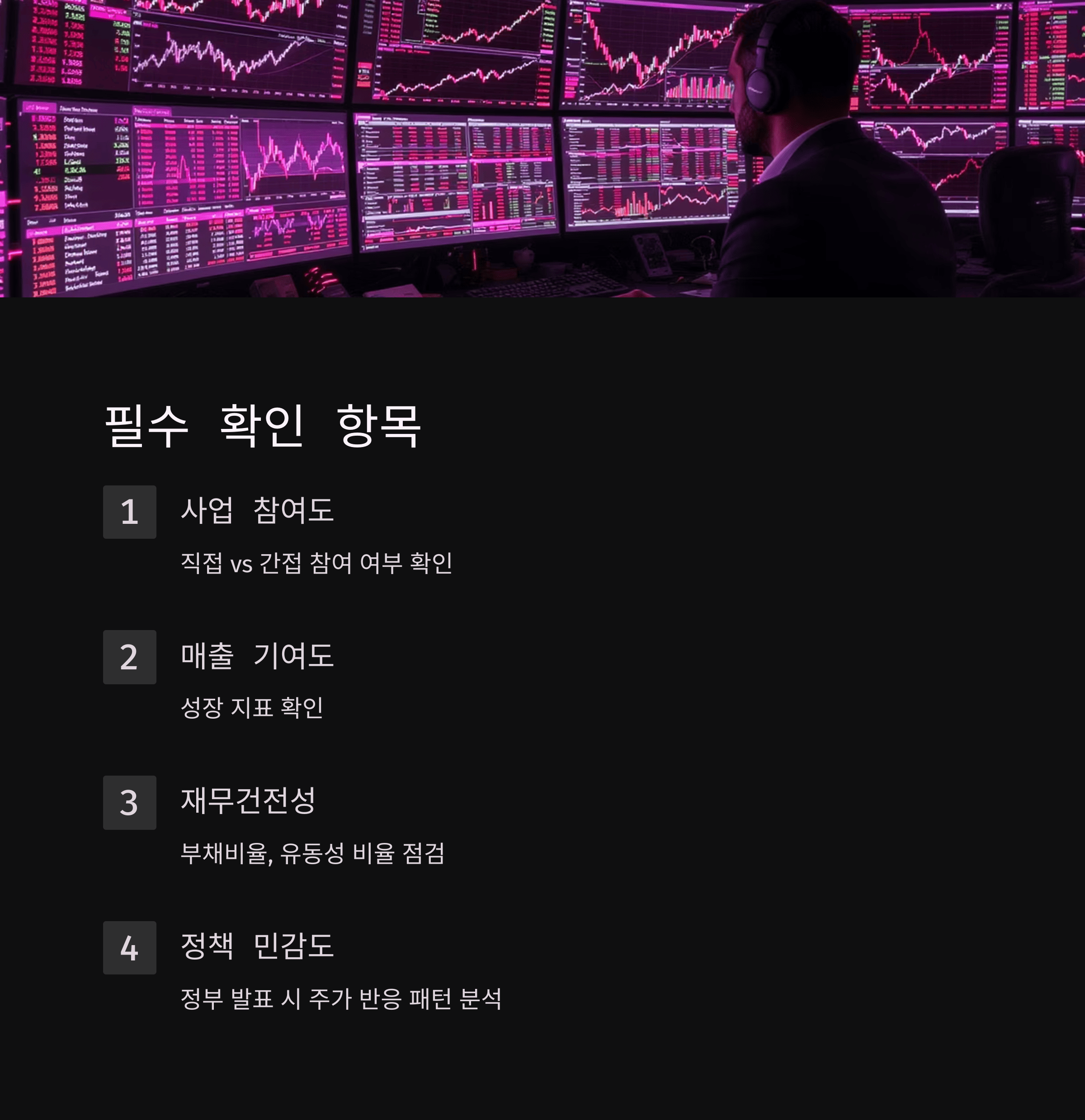 - 정책 민감도 (정부 발표 시 주가 반응 패턴 분석)